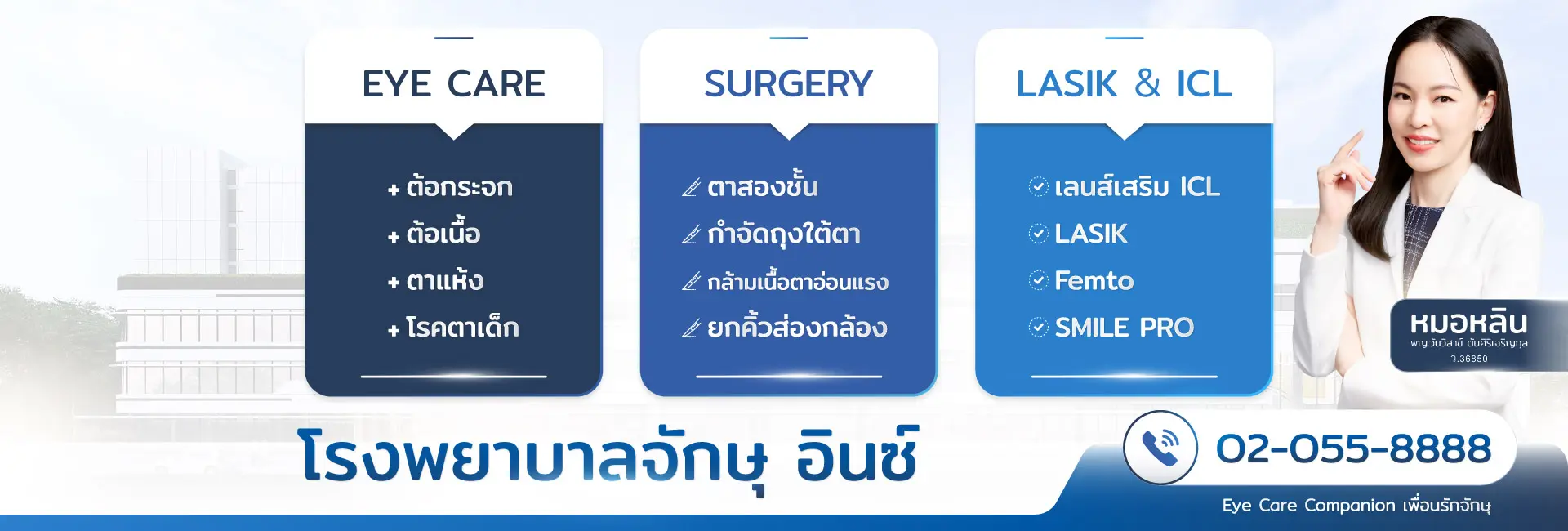 “inZ Hospital” ให้ความสำคัญในเรื่องผลการรักษา มีความมุ่งมั่นและตั้งใจในการให้บริการดูแลทุกท่าน เพื่อให้มีดวงตาที่สดใส และมีคุณภาพชีวิตที่ดียิ่งขึ้น