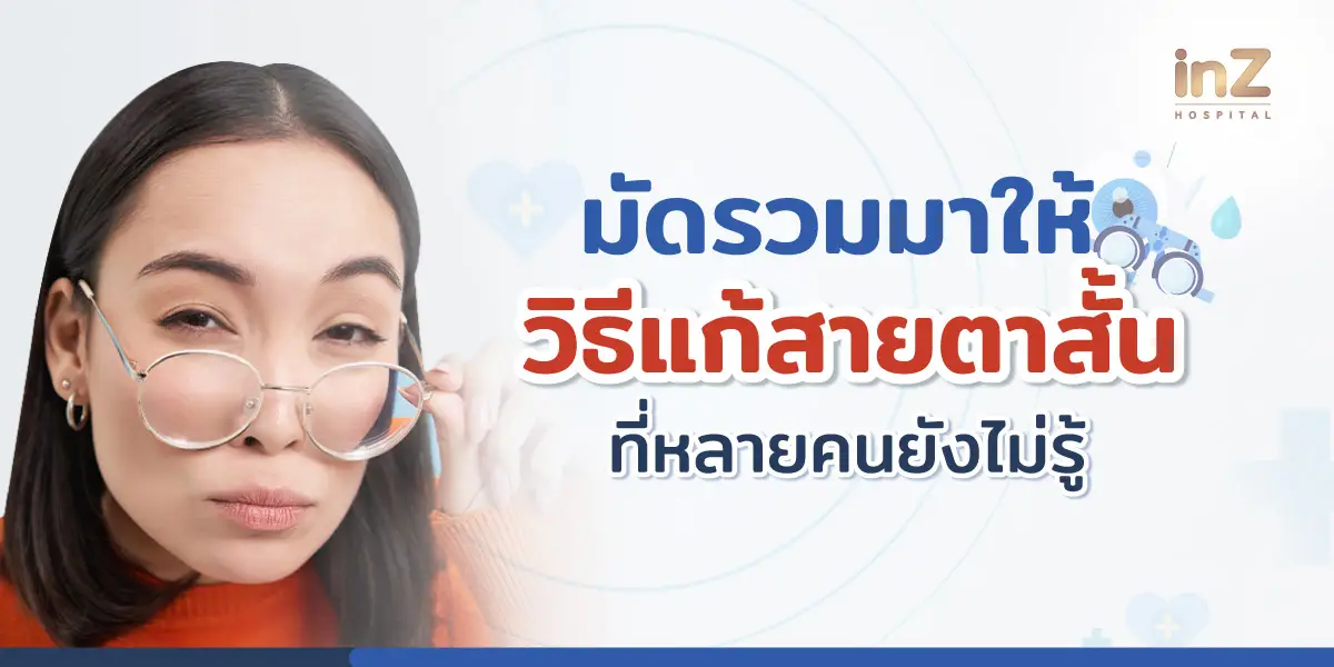 แม้ว่าจะยังไม่มีวิธีรักษาสายตาสั้นด้วยตัวเอง แต่เราก็สามารถทำเลสิกเพื่อช่วยแก้ไขค่าสายตาได้ สำหรับคนที่กำลังพิจารณาการทำเลสิกเป็นวิธีแก้สายตาสั้น แล้วเกิดคำถามว่าควรทำเลสิกที่ไหนดี? แนะนำว่าให้มาทำเลสิกที่ inZ Hospital เพราะ inZ Hospital เป็นโรงพยาบาลที่เข้าครบทุกเกณฑ์ในการเลือกสถานที่ทำเลสิก เช่น เป็นโรงพยาบาลที่ได้มาตรฐาน มีทีมจักษุแพทย์ผู้เชี่ยวชาญ มีความพร้อมทั้งเครื่องมือ เทคโนโลยีทางการแพทย์ และการให้บริการ มีวิธีการทำเลสิกให้เลือกอย่างหลากหลาย รวมถึงสามารถเดินทางมาได้อย่างสะดวกสบาย